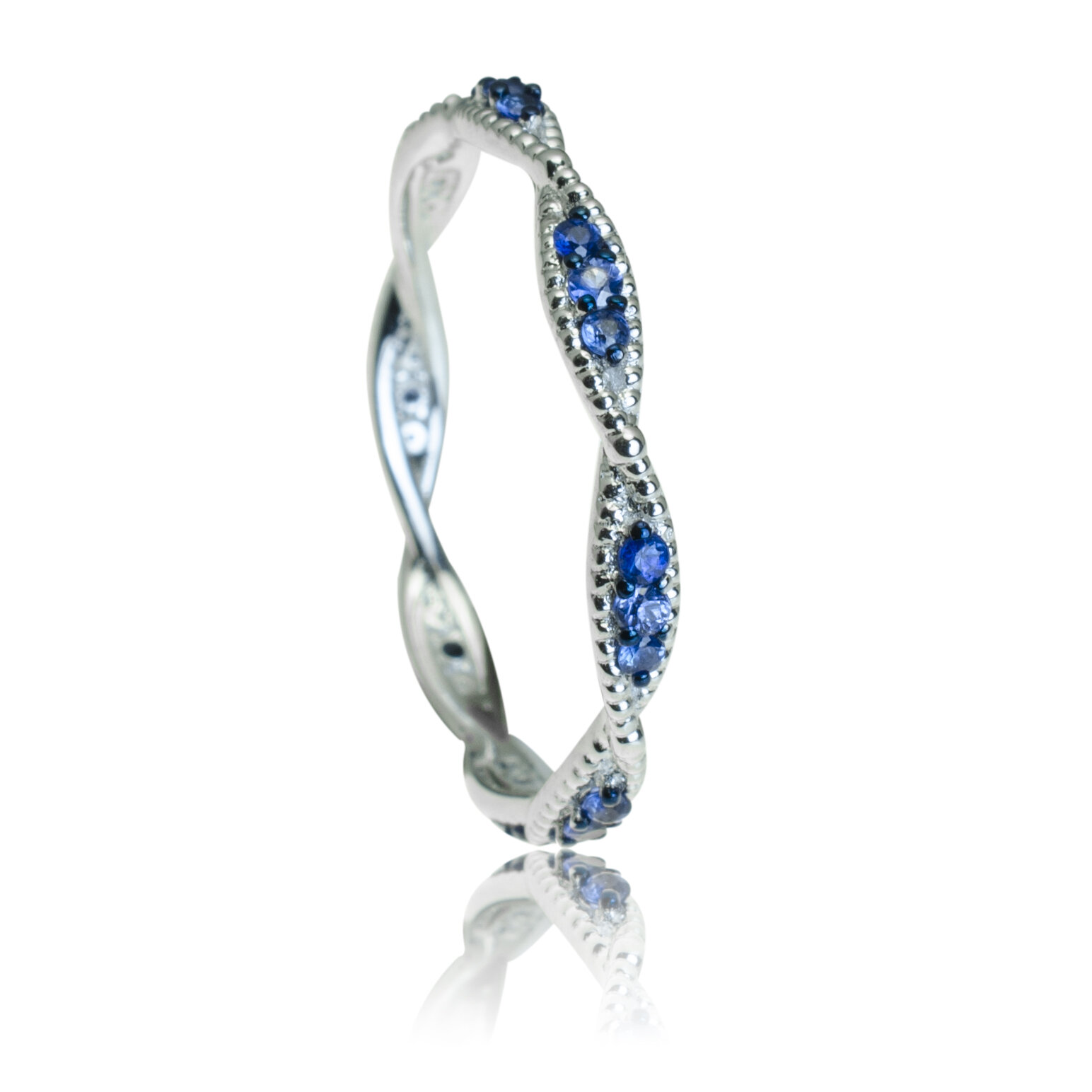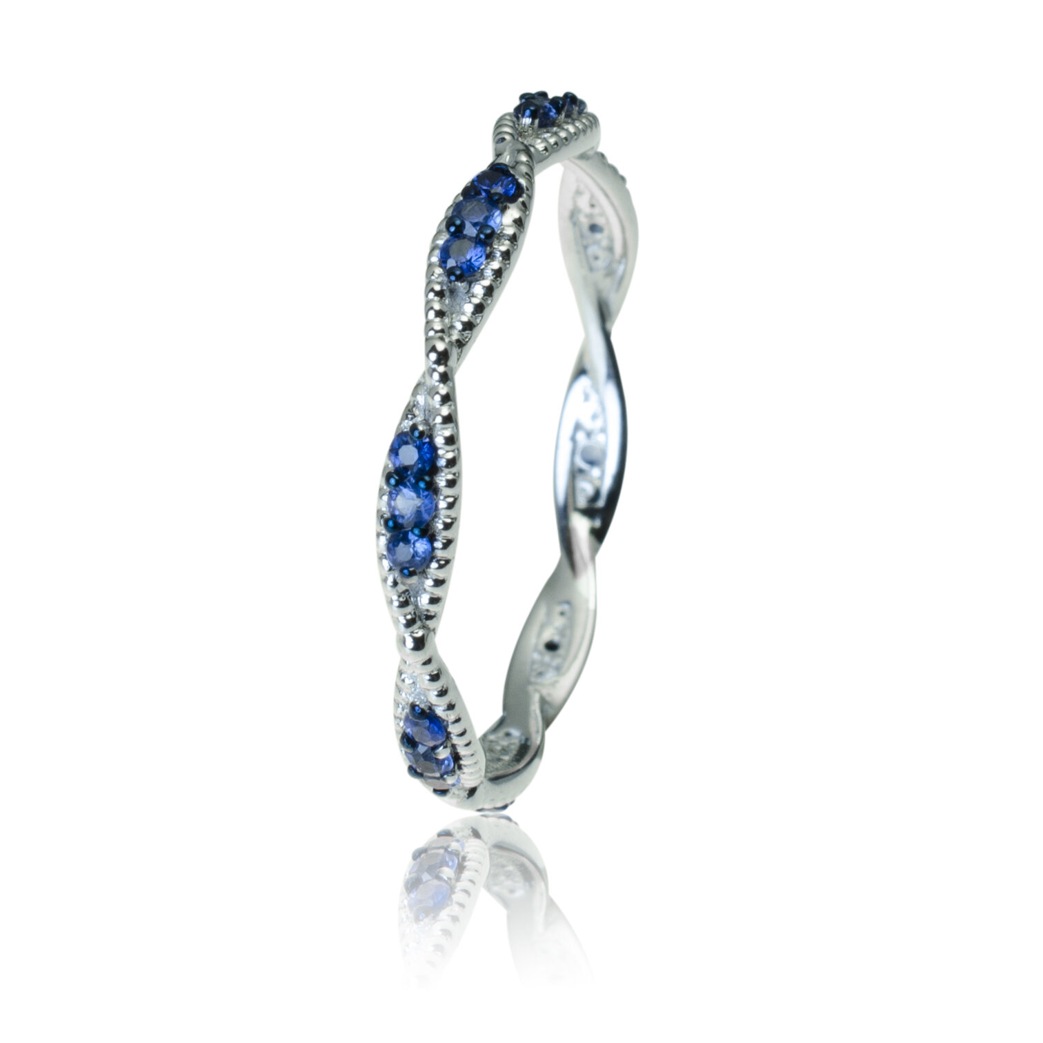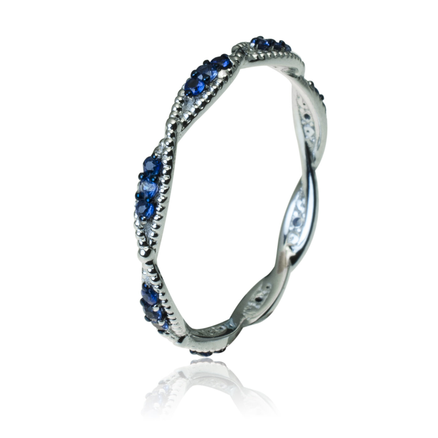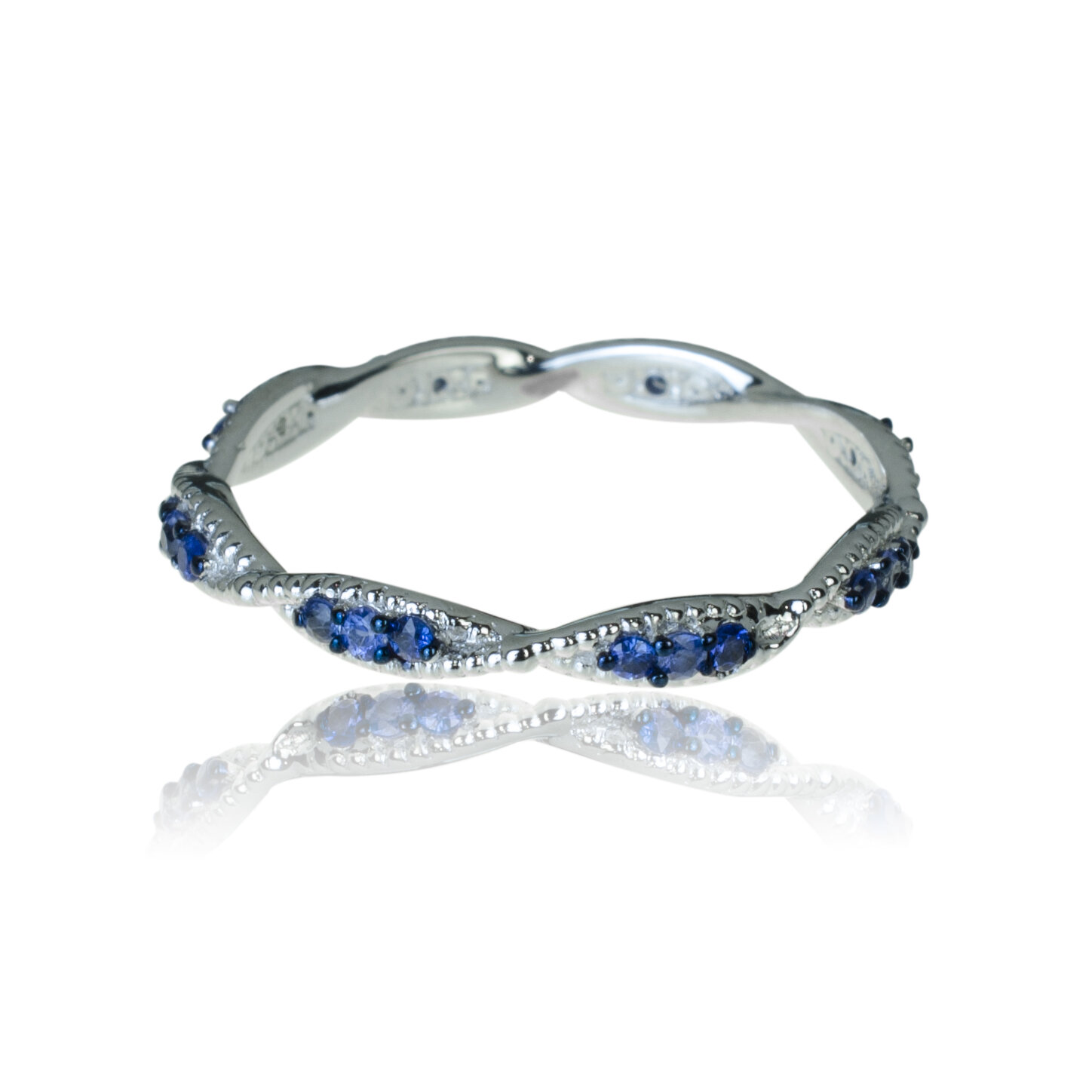 Svetová značka MORAGLIONE 1922! Kolekcia Sahara. Jemný zlatý prsteň vyrobený z lesklého bieleho zlata. Elegantný dizajn mu dodáva zvlnenie šíny, pripomínajúce duny Sahary. Šína je po celom obvode zdobená malými zafírmi. Šírka šíny je 2,3 mm. Zafíry celkom 0,27 ct. Hmotnosť prsteňa pri veľkosti 52 je 1,40 g. Šperk posielame v luxusnej darčekovej krabičke s certifikátom pravosti drahokamov.